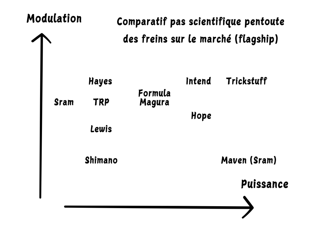 Évidemment, il y a plus que la puissance ou la modulation dans la performance d’un frein. Par exemple, sa qualité de finition, sa durabilité, sa facilité à bleeder, l’accessibilité des pièces, etc.