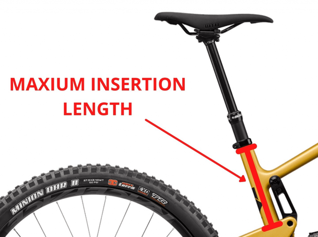 Ton cadre à une distance maximale ou tu peux enfoncer ta tige de selle. Typiquement c’est l’endroit ou le tube de selle de ton cadre tourne ou lorsqu’il frappe un obstacle comme un pivot ou des vis pour porte-bidon.