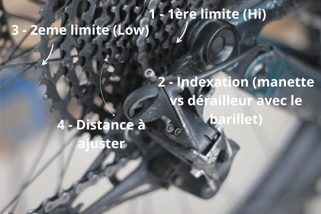 L’objectif c’est d’aligner chacun des clics de ta manette avec la position de ton dérailleur vs ta cassette à l’aide des barillets d’ajustements. Tu peux en avoir à ton dérailleur et/ou à ta manette.