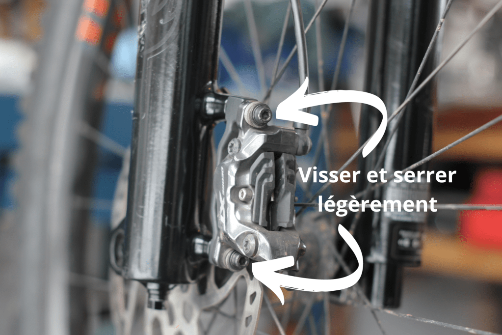 - Serre les 2 vis de ton étrier, puis reviens de ½ tour. L’objectif c’est que tu sois proche mais que ton étrier puisse bouger librement.