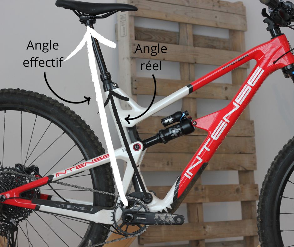 - Angle réel: c’est l’angle que va avoir ta tige de selle par rapport au sol.