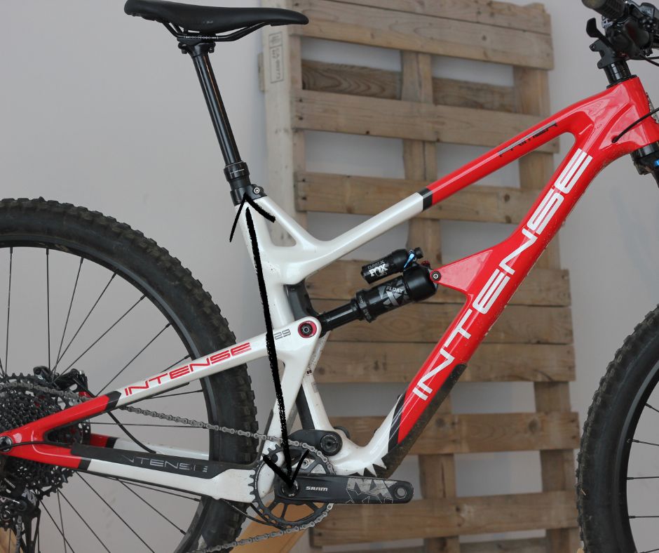 Il faut aussi prendre en considération que plus ton angle de tige de selle est grand (ce qui est bon pour grimper), plus tu as besoin d’un tube de selle court parce que ta selle se retrouve dans une position plus obstruante en descente.
