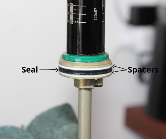 Tu peux utiliser un pick pour accrocher et pousser vers l’intérieur le wiper seal, le seal et les spacers dans le haut de ta canne. Je te recommande de t’installer fermement sur un table pour éviter de scratcher les surfaces de ta schock si tu glisses.
