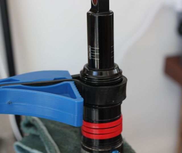 Tu peux installer ta suspension dans un étau et mordre au même endroit que ton cadre se tient: c’est fait pour prendre la pression.