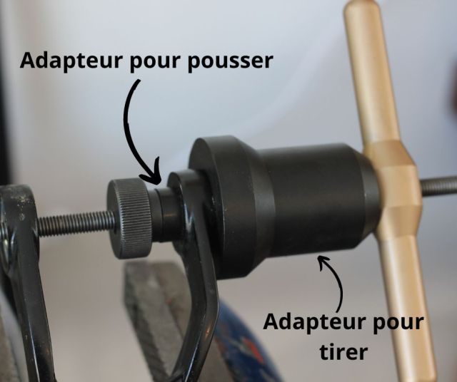 Tu veux le plus gros qui fit dans le trou du cadre pour avoir le meilleur appui possible. - Trouver l’adapteur qui permet de s’appuyer sur ton cadre pour tirer sur le bearing.