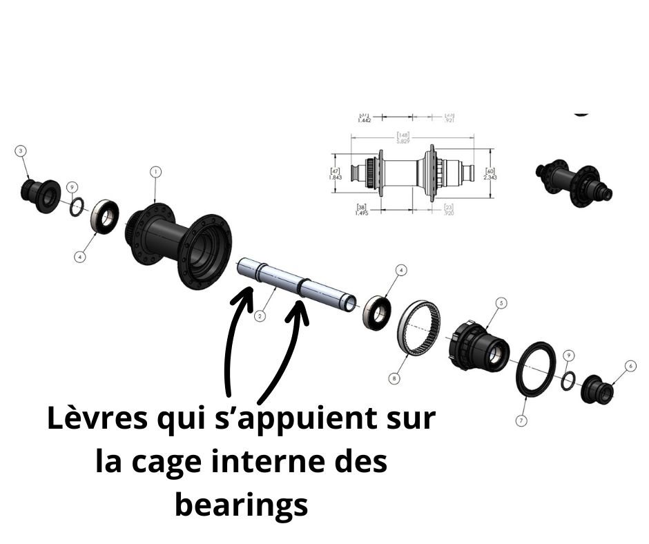 Tu peux souvent te dépanner avec tes end caps pour ton moyeu avant, mais en arrière c’est souvent plus difficile. L’axe agit aussi comme un guide dans ce cas-ci pour t’aider à presser droit ton bearing.