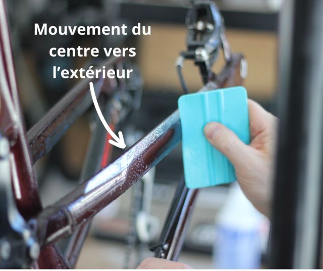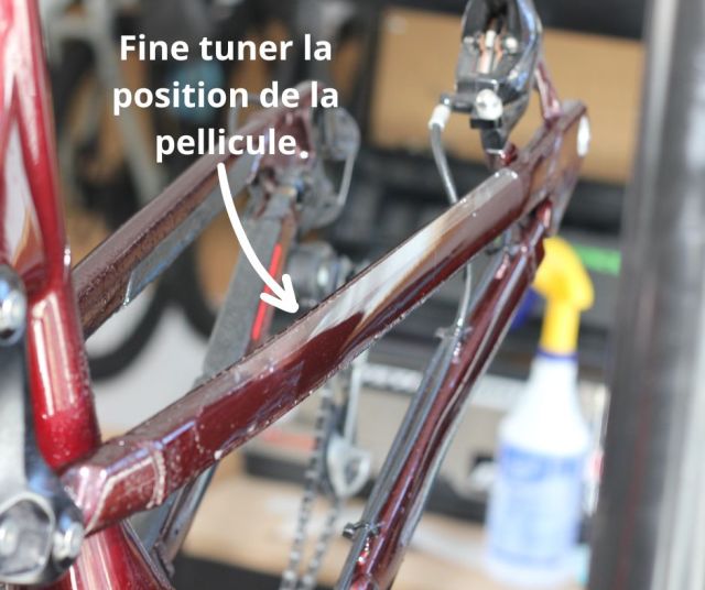 Tu peux par la suite laisser ton vélo reposer quelques heures pour laisser le temps à la pellicule de bien adhérer.