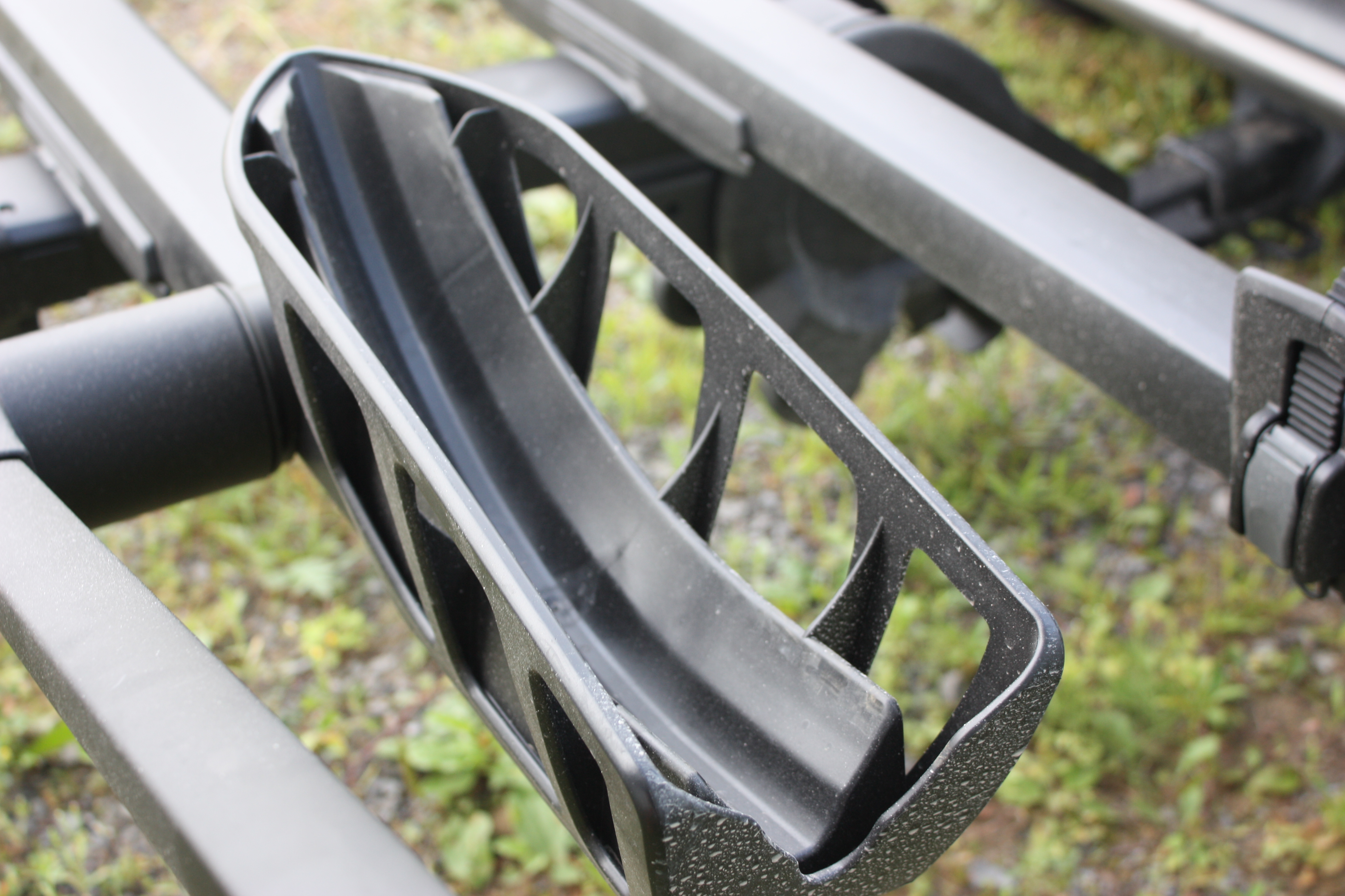 - Le système qui met la tension dans le hitch (pour prendre le lousse) à tendance a tordre avec le temps et le rack prend un angle sur le côté. Ça affecte surtout les versions 1 1/4, mais même les 2 pouces le font un peu.