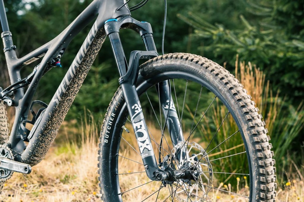 Un des mythes les plus communs dans le monde du vélo (route ou montagne), c’est l’idée que des pneus plus étroits vont générer moins de résistance au roulement (être plus roulant). Et boy ho boy, Specialized est allé all-in avec des Butcher 2.3 sur le Stumpjumper.