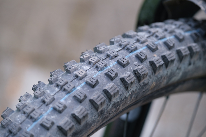 - Un tread pattern ouvert, constant et prévisible à la limite: l’idée c’est de créer un bike l’fun à pousser proche de sa limite, la dernière chose que tu veux c’est un profil de pneu imprévisible.