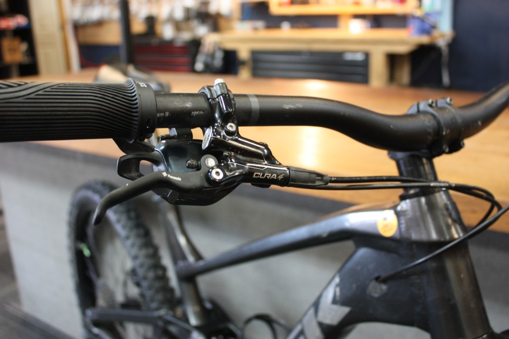 Le Slash est venue en vaste majorité avec des Sram Code et, que ce soit les R ou les RSC, ils vont saisir. C’est d’autant plus vrai que les versions 2021-22 venaient avec des disques 180mm en arrière qui toastaient quasi instantanément (- diamètre = + chaleur, donc pistons qui saisissent plus vite).